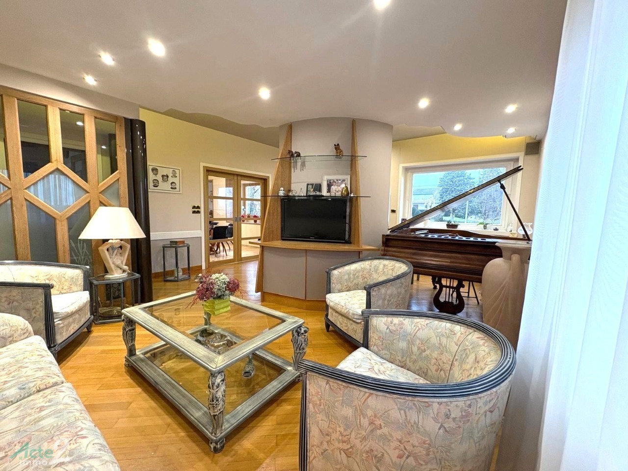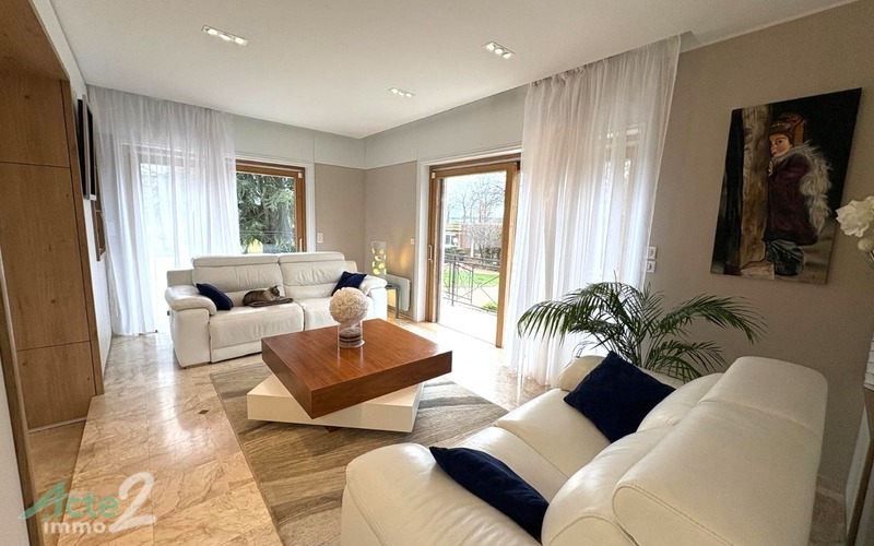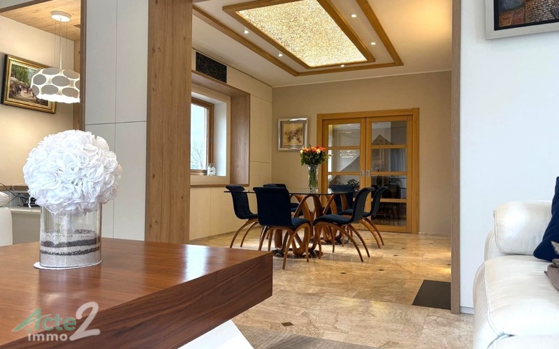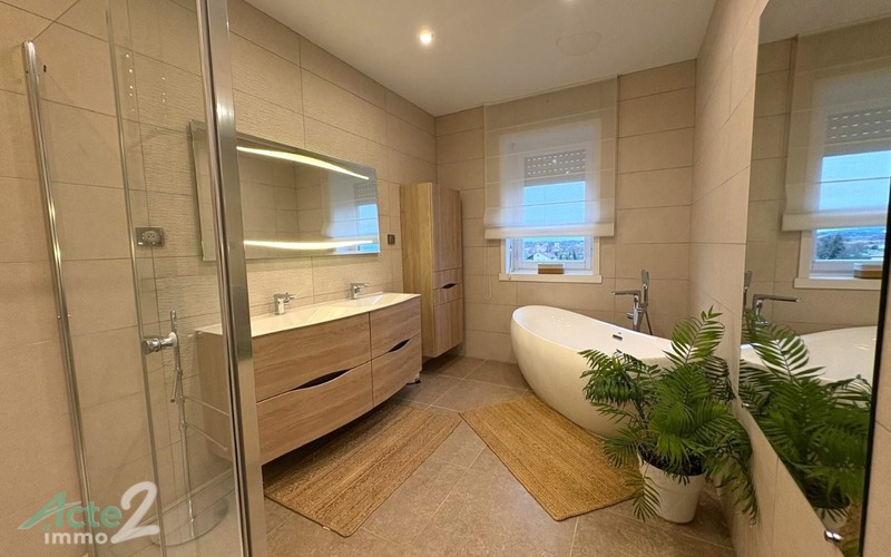 Cette maison semi-entérrée dispose de cinq chambres dont deux au rez de chaussée. plus une suite parentale -une salle de jeux .