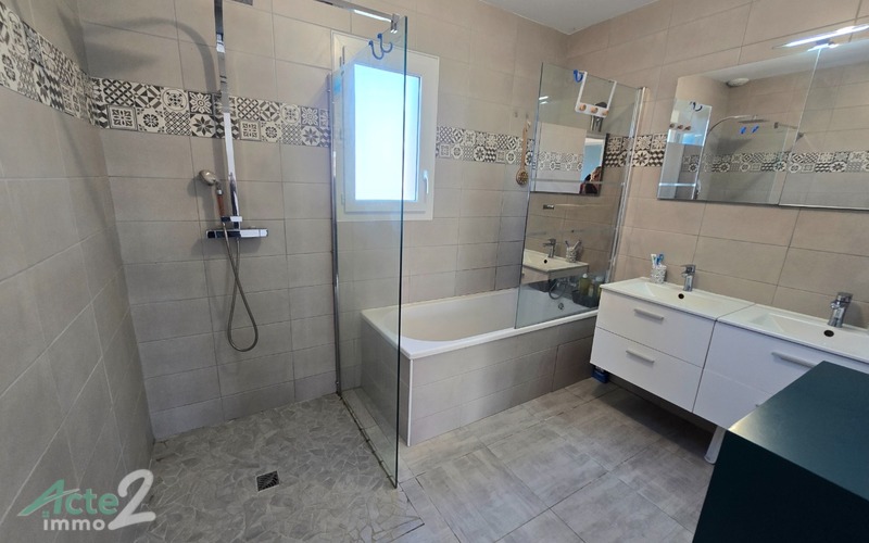 Un cellier - une buanderie et un garage .Chauffage au sol gaz de ville -Fenetres double vitrage et volets alu électrique . Le tout sur un terrain clos de 594 m².